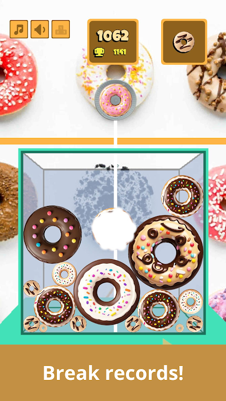 도넛을 전략적으로 떨어뜨려 동일한 도넛과 충돌하여 더 크고 맛있는 도넛을 만드세요. 클수록 더 많은 포인트가 있습니다.