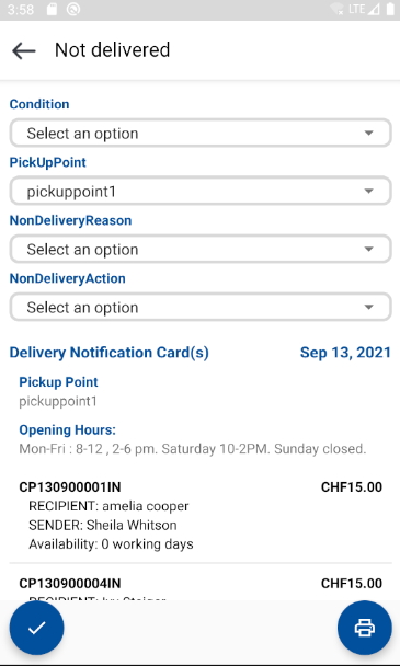 이 앱을 사용하면 배달 에이전트가 로그인하고 현재 작업 중인 시설을 선택하고 할당된 배포 알림 목록을 검색할 수 있습니다. 그런 다음 인터넷 연결 여부에 관계없이 메일 배달 작업을 시작하고 배달 및 배달 실패 이벤트를 등록하고 교대 총계를 관리할 수 있습니다.