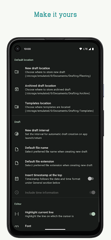 Drafting을 사용하여 작성한 모든 내용은 장치에 로컬로 일반 텍스트 파일로 저장됩니다.