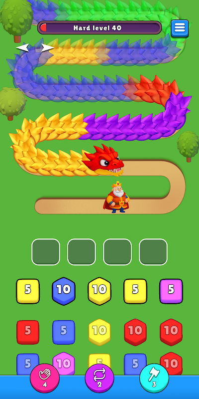 드래곤 블래스트!에서 장대한 모험에 뛰어드세요! 알록달록한 드래곤으로부터 왕국을 지켜야 합니다! 여러분의 임무는 하단에 나타나는 대포를 탭하여 활성화된 슬롯에 넣고, 드래곤의 해당 색깔 부분을 향해 발사하여 드래곤이 왕에게 접근하지 못하도록 막는 것입니다. 색깔이 맞지 않으면 대포는 차례를 기다립니다. 발사에 성공할 때마다 승리에 한 걸음 더 가까워집니다!