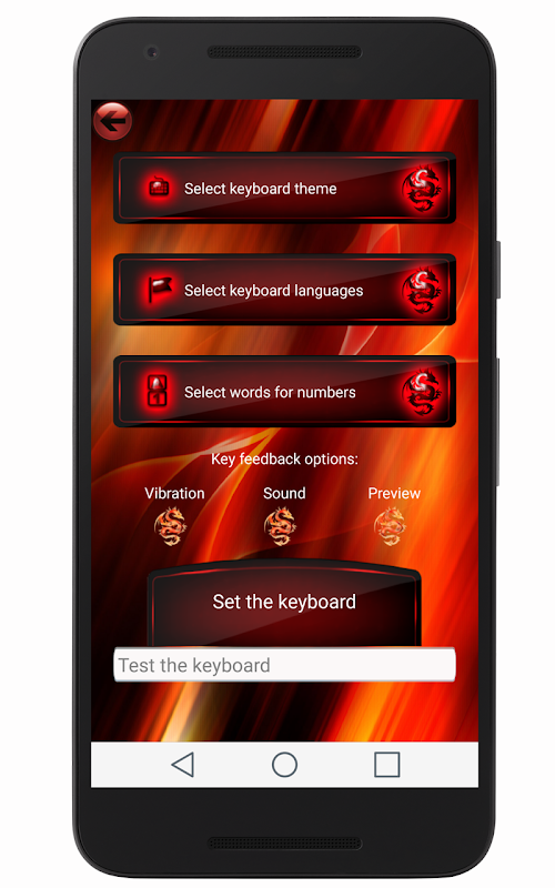가장 시원한 블루와 레드 드래곤 테마로 휴대 전화와 태블릿 두세요! 그들이 바로 손가락의 아래에 약간의 불을 날려 보자! 이 키패드 레이아웃 갤러리에서이 세련된 스킨은 채팅을하면서 완전히 무한되기 위해 필요한 모든 것입니다! 당신 같은 경험 SMS 문자 메시지 전에 결코하지 않았다! 이 사용하기 쉬운 소프트웨어 및 사용자 정의에 대한 놀라운 기능을 사랑합니다!