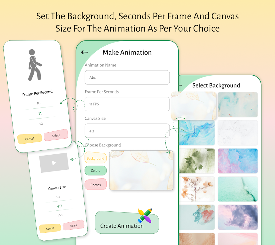 - 배경 선택을 선택하여 애니메이션 플립북 이름을 추가하세요.