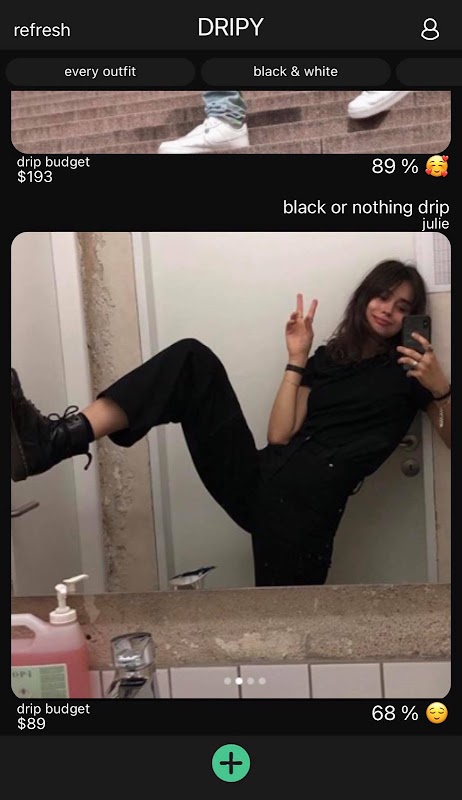 Dripy has one feed with no followers, everybody have same chance to show their outfit.