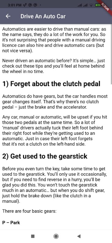 Driving Guide will be your easy guide on how to drive auto and manual car and manual Bikes. Easy to understand and follow steps. Beginners in manual driving definitely learn from this app. This works offline too.