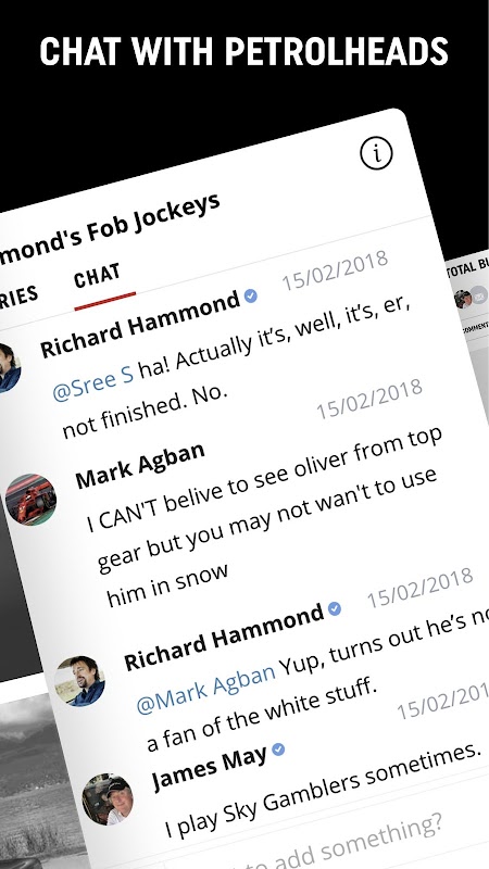 • Live chat in every single Tribe, you can even chat with Clarkson, Hammond and May