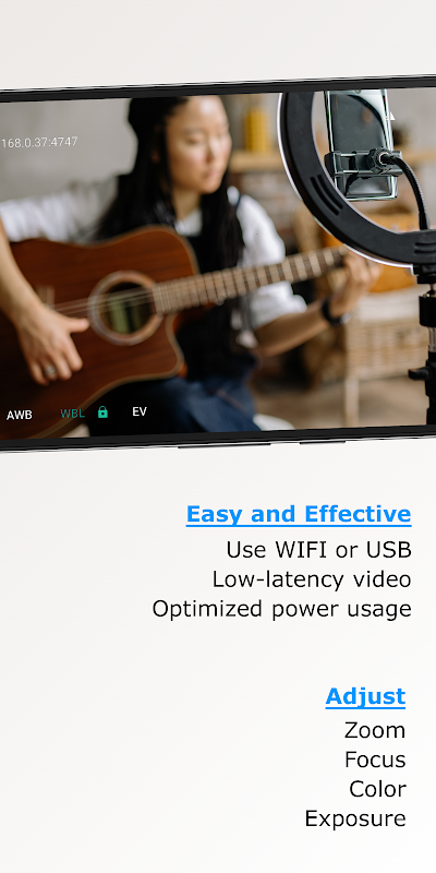 휴대폰을 화상 통화, 라이브 스트리밍, 비디오 제작을 위한 고급 웹캠으로 사용하세요.