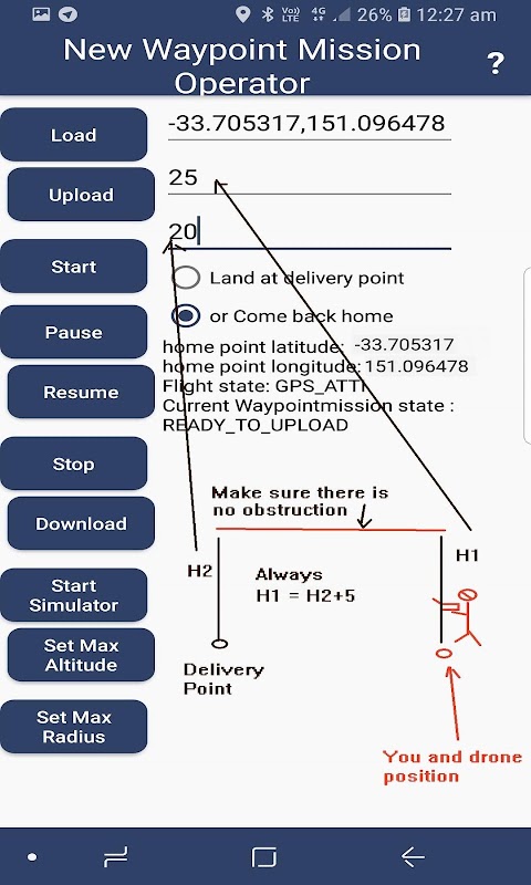 You also need the flight height and descend height and option to whether land at delivery point or return home.