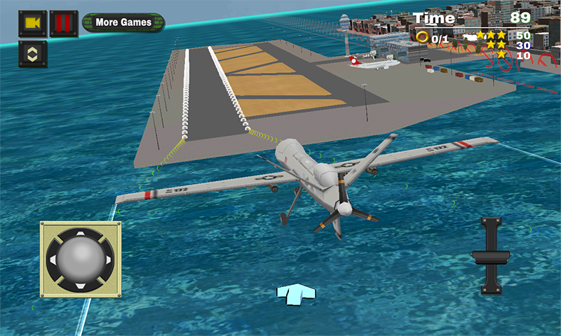 이 무인 항공기 비행 시뮬레이터에서 당신은이 군사 무인 항공기 시뮬레이터의 본질 우리의 공항에서 활주로에 안전하게 주어진 좌표와 땅을 비행하지만 마음 시간을 유지해야합니다