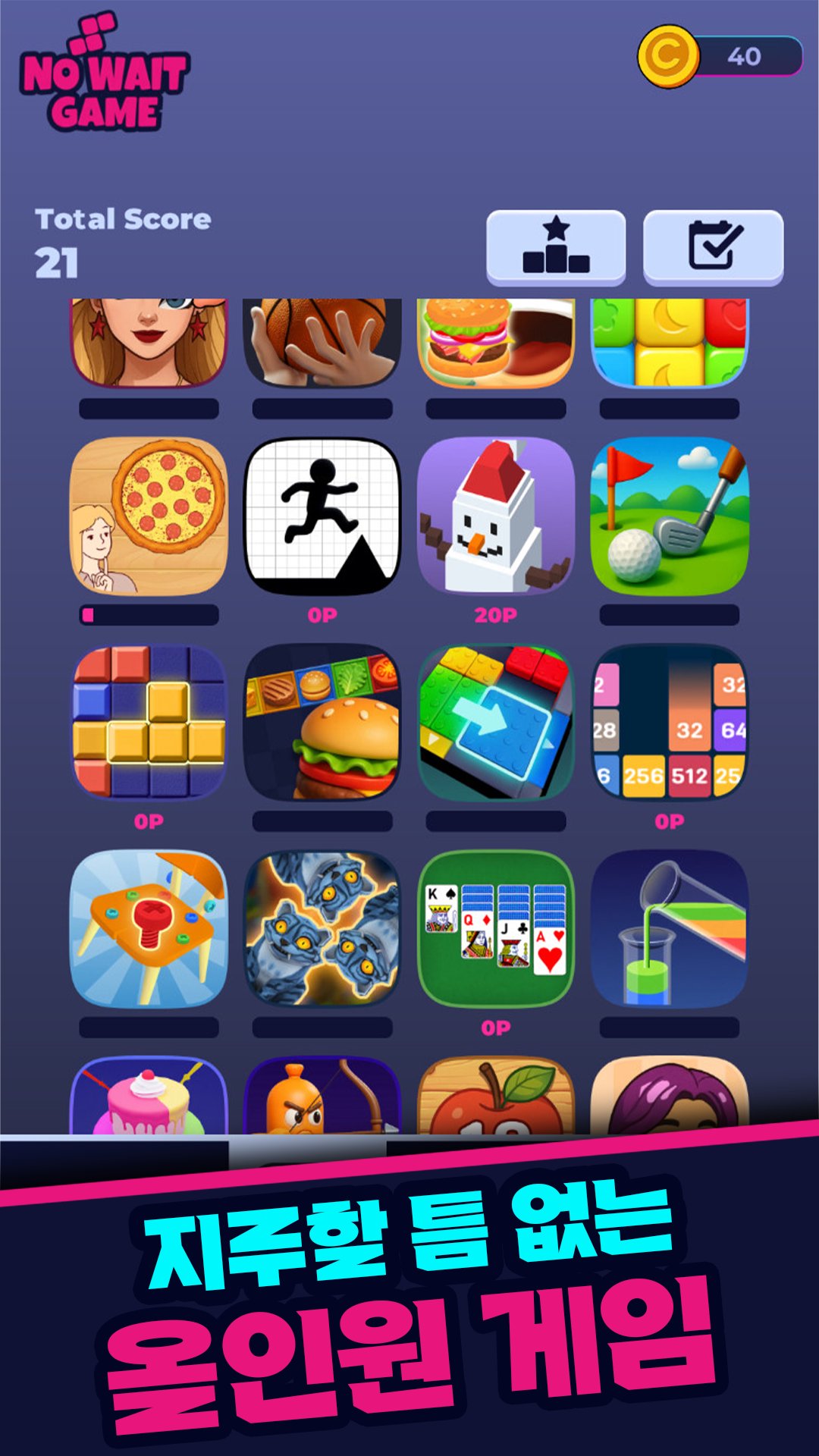 No Wait에서 끊김 없는 미니게임 플레이를 경험해보세요.