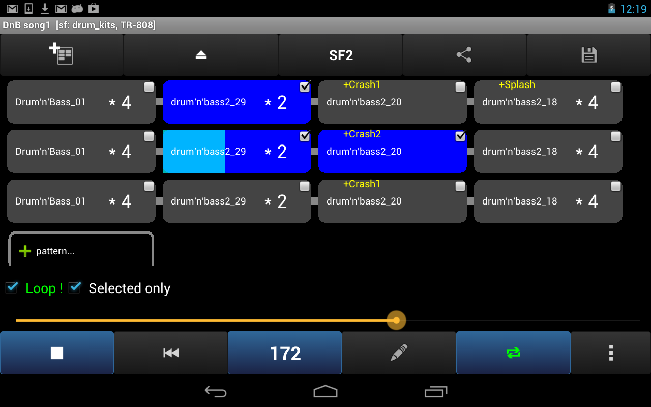 현재이 응용 프로그램은 "전용"드럼 선수이고 패턴 수준에 편곡자가 아니라 비트 수준, 즉에 주. 비트 시퀀서처럼 * 새 * 패턴을 만들 수 없습니다.