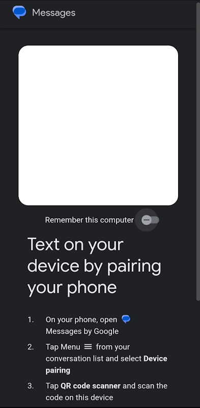 이 앱은 messages.google.com/web을 기본 앱으로 로드합니다...
