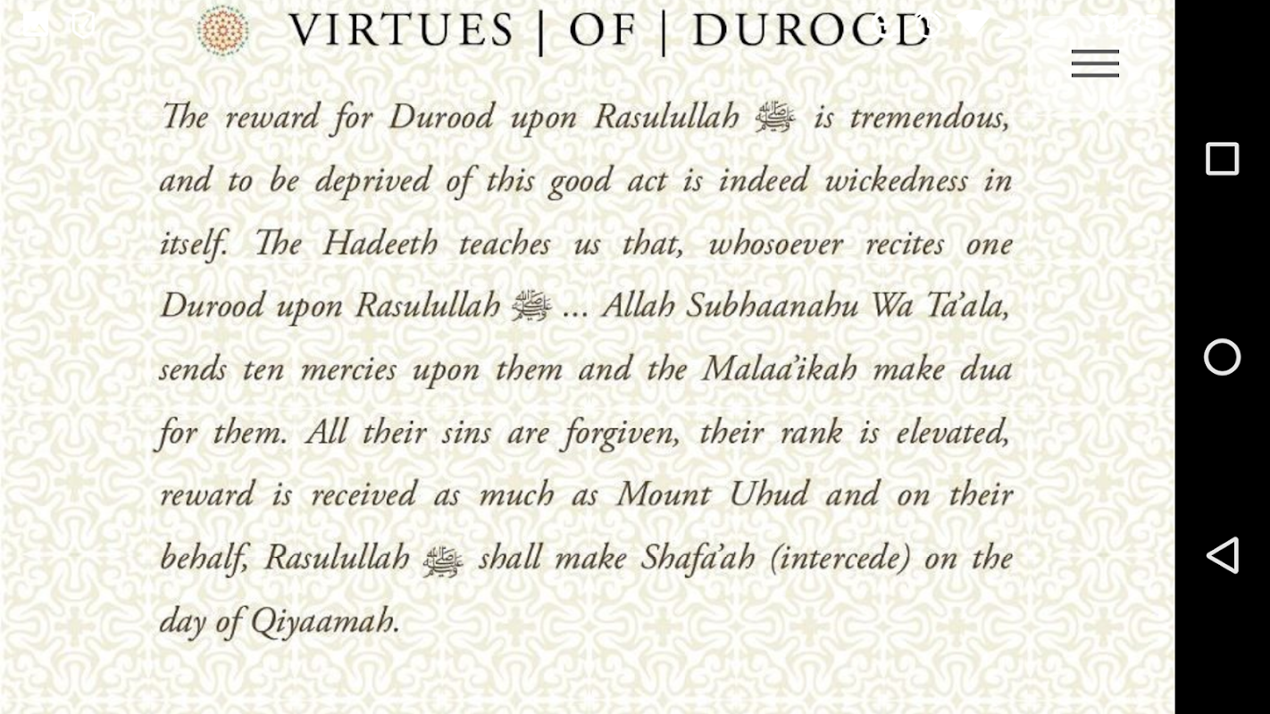 Durood의 샤리프 (Salaat와 살람) 응용 프로그램은 꾸란과 Hadees에 언급 된 모든 durood 및 Salat을 결합하여 40 마흔 Durood 샤리프가 포함되어 있습니다.