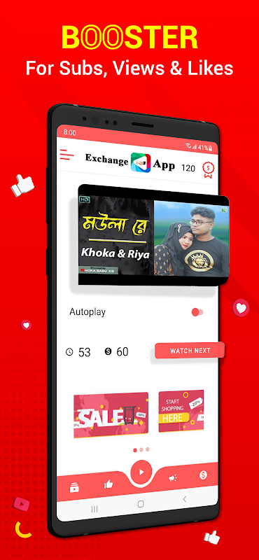 ExchangeApp-Video Promoter는 동영상 조회수를 높이는 데 도움이 되는 동영상 시청 앱입니다. 자신의 네트워크 또는 다른 네트워크에서 비디오를 증폭하는 데 도움이 됩니다. 다른 사람의 동영상을 볼 수 있고 다른 사람이 여러분의 동영상을 보면서 도움을 줄 수 있는 사용자 친화적인 앱입니다. 이 앱을 사용하면 더 많은 조회수를 쉽게 얻을 수 있습니다.