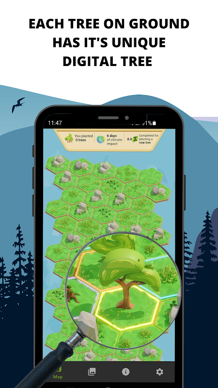 더 많은 시간을 허용할수록 더 많은 진짜 나무를 심을 수 있으며 Tree-Nation.com의 지도에 인증서가 표시됩니다.