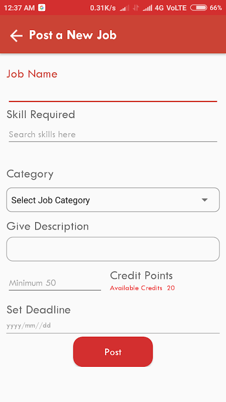 If a person wants to get a job done he can post it here with paying a small amount assigned for that and the app will search in its data base for the person with the skills required for that particular job.
