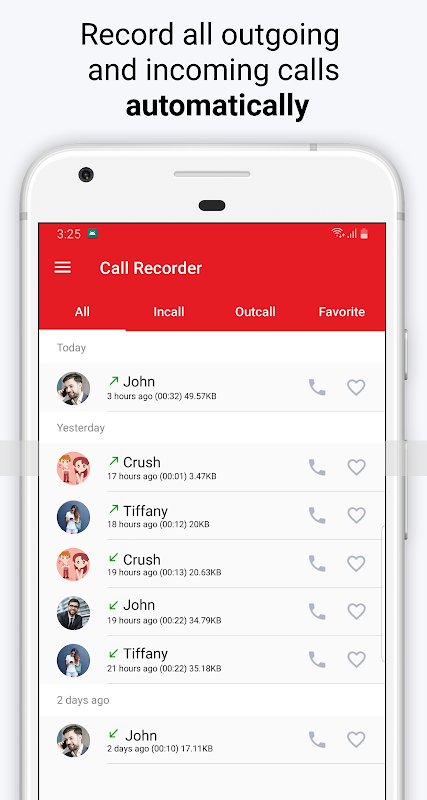 - Record calls automatically with high quality while you in incoming calls or outgoing calls.