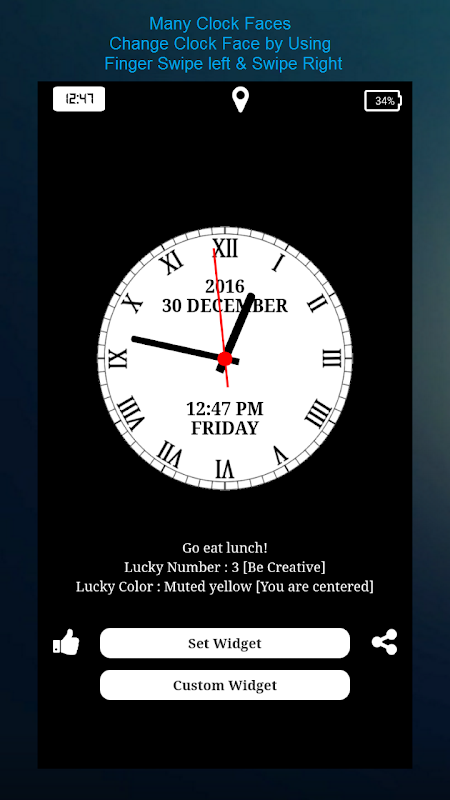 • Both Digital watch and Analog watch allows user to set as their widget on their personal screen by tapping on "Set as Widget" button in app;