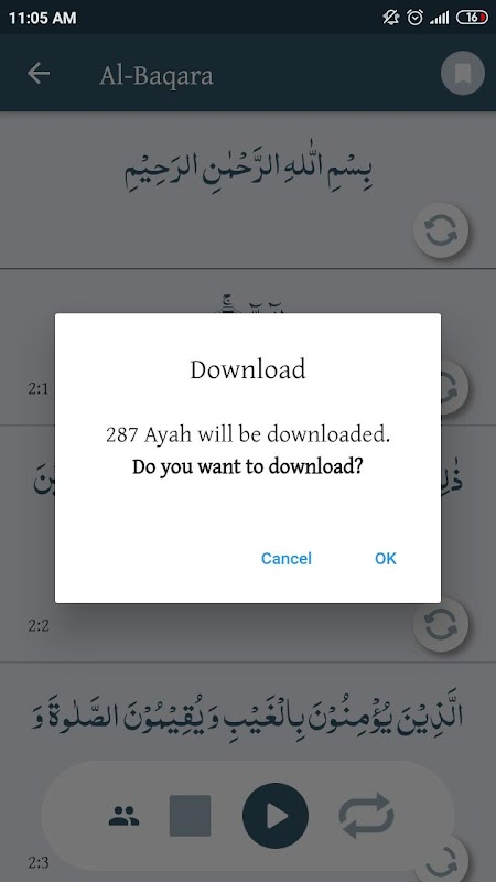 ● Ayah 현명한 암기를 위해 단일 ayah를 연주하고 반복하십시오.