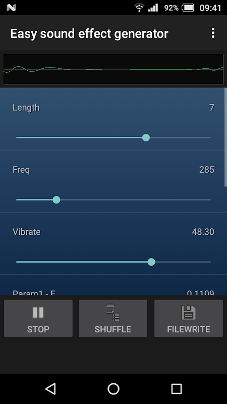 이 앱은 사운드 효과를 쉽게 생성 할 수 있습니다. 셔플 버튼을 누르면 사운드 효과가 자동으로 생성됩니다.