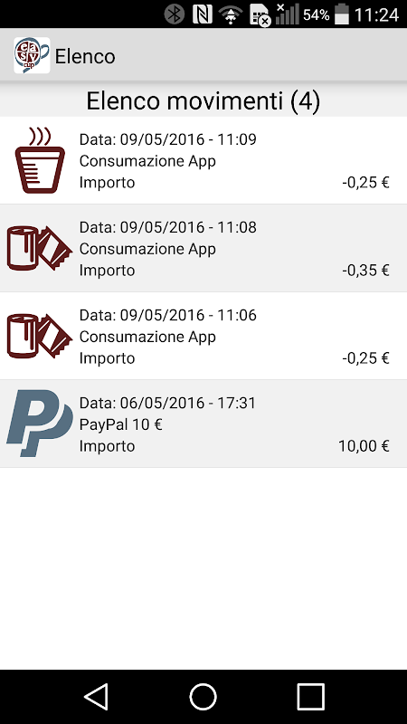 IL CREDITO: EASYCup scala l’importo dovuto dal credito memorizzato all'interno dell’applicazione. La ricarica può essere effettuata: