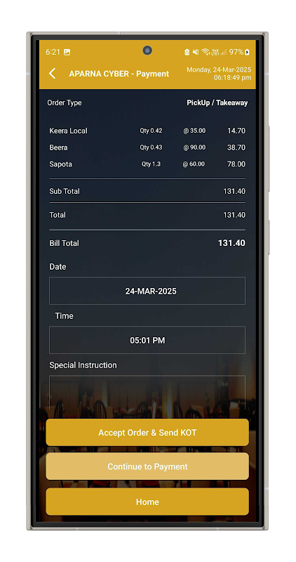 EasyDelivery21은 F&B 산업 내 운영 효율성을 높이고 고객 만족도를 높이기 위해 맞춤화된 종합 모바일 POS(Point-of-Sale) 시스템입니다. 직원이 일일 청구서를 원활하게 관리하고 레스토랑, 카페 및 유사한 시설에서 다양한 프로세스를 간소화할 수 있는 사용자 친화적인 인터페이스를 자랑합니다.