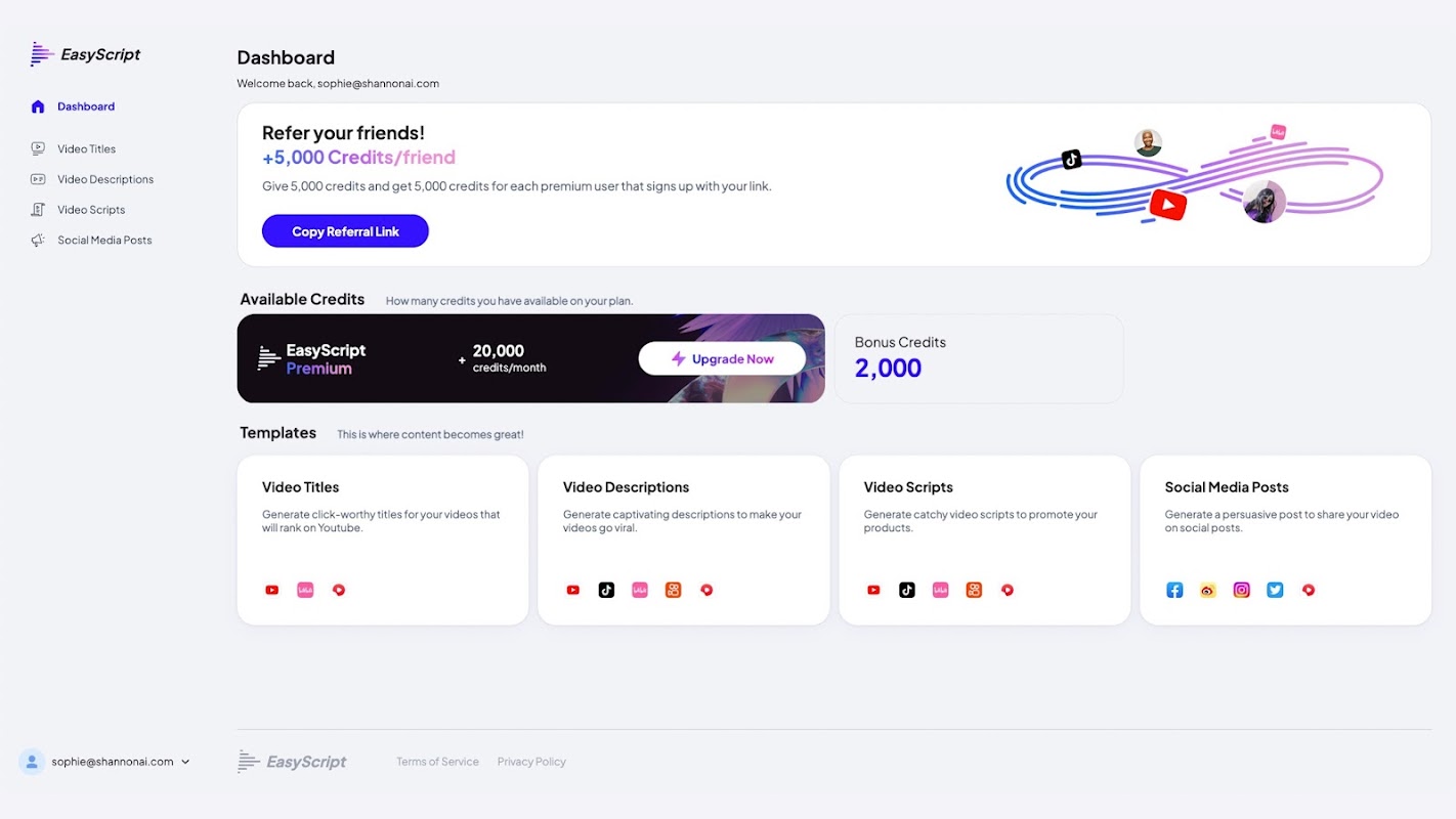비디오 스크립트 및 마케팅 사본을 위한 AI 기반 생성기!