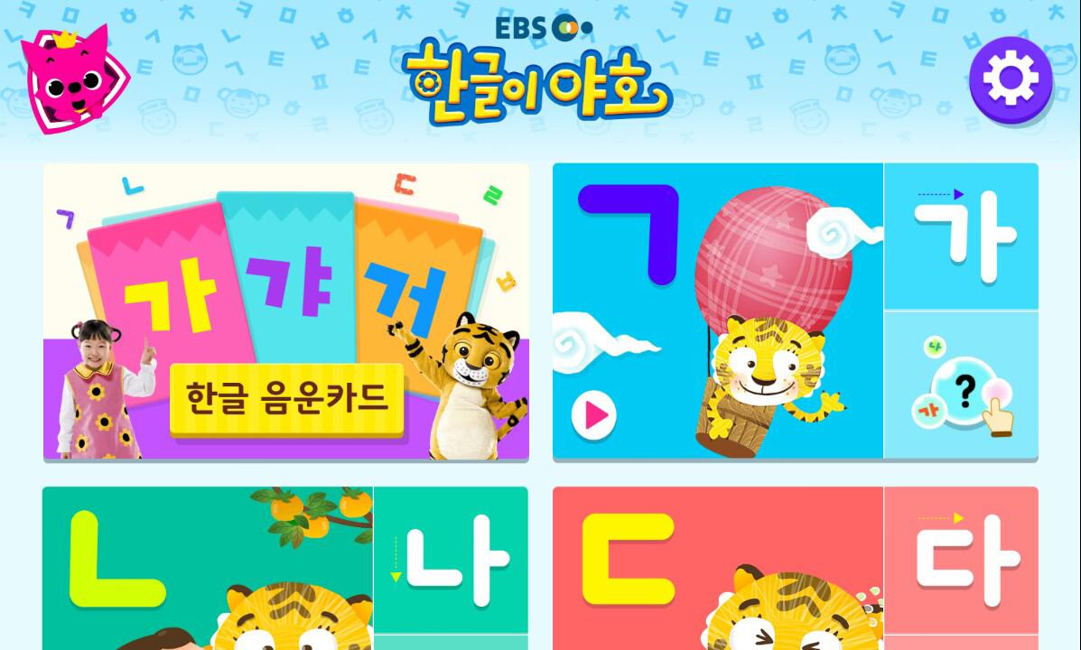[EBS 한글이야호]는 한글 창제의 기본 원리인 자음과 모음의 결합 원리를 이용한 음운교육 커리큘럼을 따릅니다.