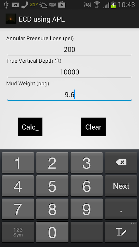 Another ECD calculation although this one is calculated using Annular Pressure Loss as one of the input values.
