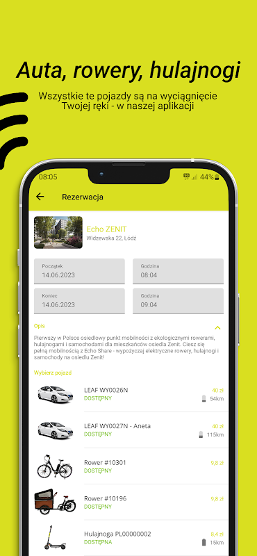 EchoShare는 Zenit 주택 단지 거주자가 친환경 차량을 대여할 수 있는 현대적인 Mobility Hub입니다. 함대에는 EchoShare 앱을 통해 쉽게 접근할 수 있는 전기 자전거, 스쿠터 및 자동차가 포함됩니다. 자신의 교통 수단을 갖는 것에 대한 이상적인 대안입니다. Zenit 부동산의 거주자는 전기 자동차를 자유롭게 사용할 수 있는 별도의 공간이 있습니다. EchoShare는 이러한 솔루션을 제공하는 폴란드 최초의 주택 단지 모빌리티 허브입니다. 이제 친환경적이고 편안한 새로운 형태의 모빌리티를 만나보실 수 있습니다.