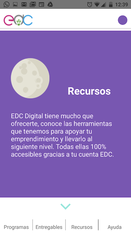 EDC Digital es una aplicación desarrollada por Distrito Emprendedor diseñada con una estructura tipo e-learning con materiales de aprendizaje y desarrollo de entregables que permite a los usuarios desarrollar y construir una idea de negocio desde cero.