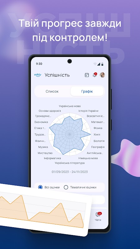 - 성과 그래프 - 현재 상태가 어떤지 알고 싶으십니까? 동적 그래프는 모든 과목의 진행 상황을 보여줍니다. 성과를 추적하고 새로운 승리를 위해 동기를 부여하세요!
