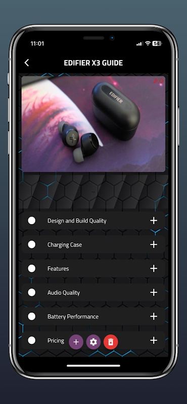 EDIFIER X3 가이드 앱은 이어버드의 기능 및 사양을 표시합니다.