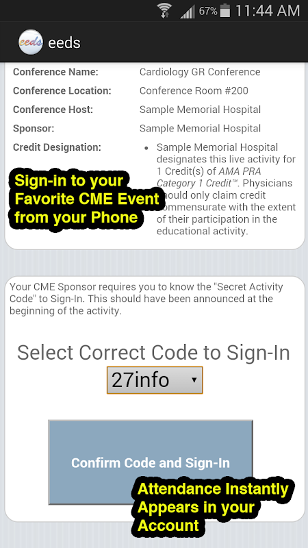 - View your CME/CE records (which shows events you self-report plus any events you attended where you used your eeds swipe card)