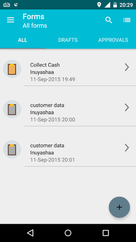연락처 : 사용자는 장치에있는 연락처에서 고객을 만들 수 있습니다.