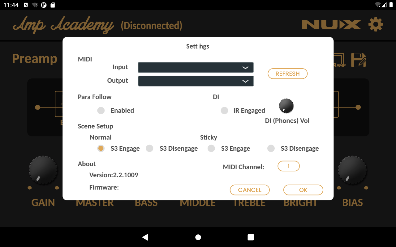 NUX 효과 페달용 OTG 원격 제어 및 장치 관리 앱