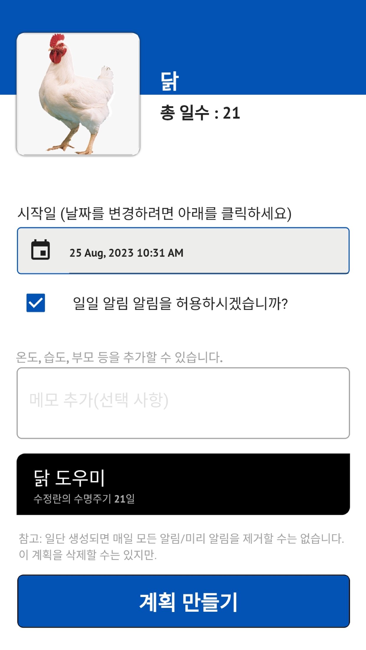 - 선택한 새와 함께 계획을 세우고 원하는 경우 일일 알림을 선택하세요.