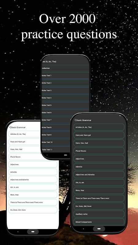• 연습 및 테스트 모드: 연습 문제를 통해 실력을 강화하거나, 테스트 모드를 통해 각 문법 주제에 대한 이해도를 평가해 보세요.