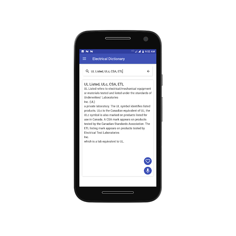 Free Offline Electrical Dictionary app containing words and their pronunciation , definition and synonyms for Electrical practitioners and students to look up the definitions and technical terms in a second.