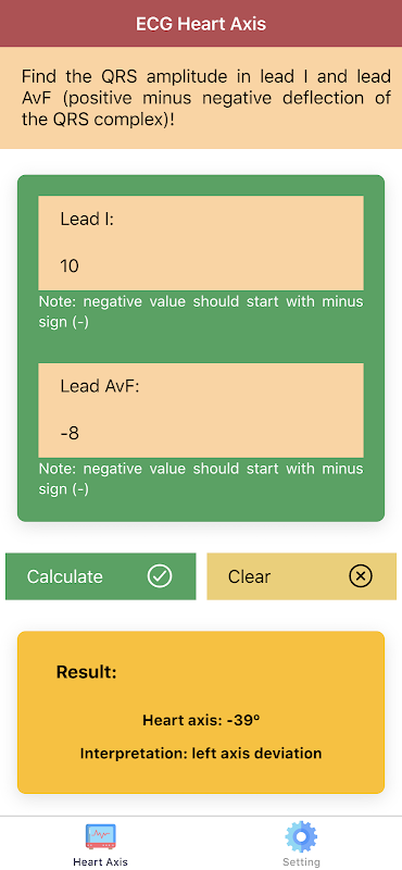 Disclaimer: all calculations must be re-checked and should not be used alone to guide patient care, nor should they substitute for clinical judgment. Calculations in this “Electrocardiogram (ECG) Rhythm App: Heart Axis” app might be different with your local practice. Consult to expert doctor whenever necessary.
