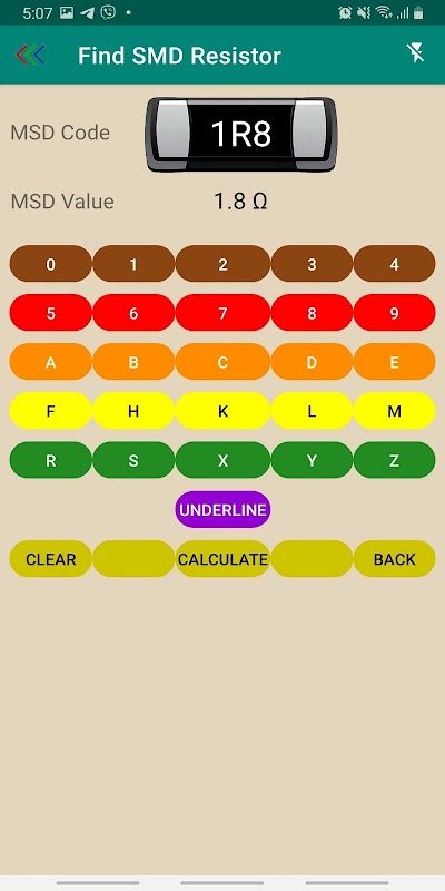 앱은 핸드셋 카메라를 사용하여 저항, MSD 및 커패시터를 스캔하여 값을 얻습니다.