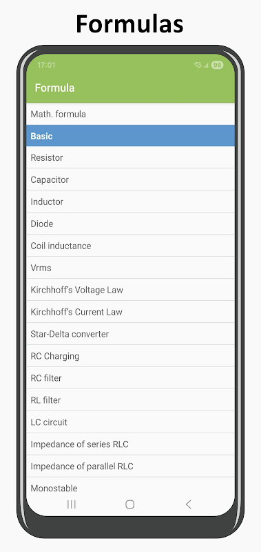 이 앱은 기본적인 전자 계산기 모음입니다. 애호가, 전자 엔지니어 또는 전문가에게 적합합니다.