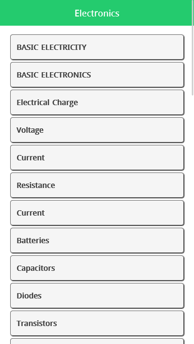Learn electronics 앱은 초보자에게 필수적입니다. 가장 일반적이고 유용한 챕터를 제공합니다. 이 기본 전자 과정은 예제와 설명을 제공합니다. 이제 기본 전자 책을 휴대하고 언제 어디서나 배울 수 있습니다.