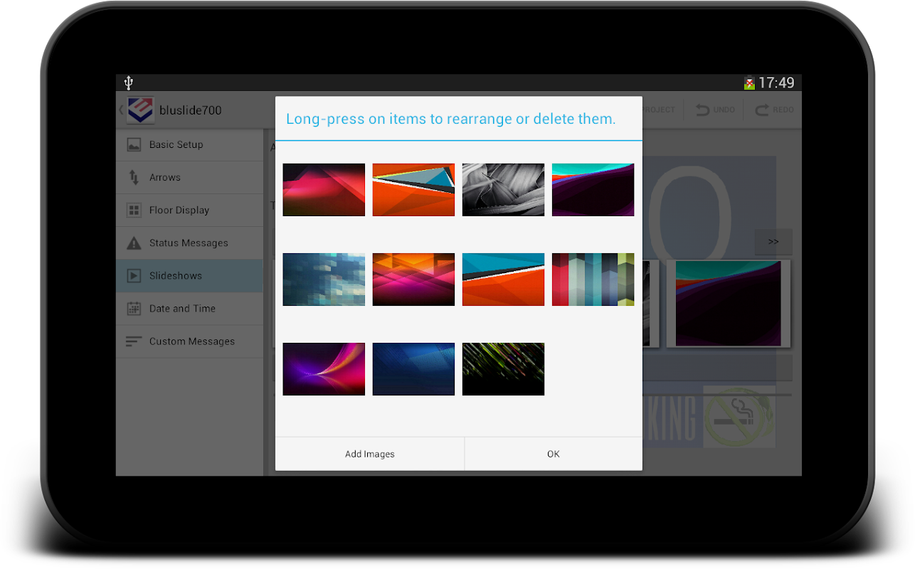 관리하고 간단하게 전화 또는 타블렛에서 엘리베이터 디스플레이를 사용자 정의 할 수 있습니다.