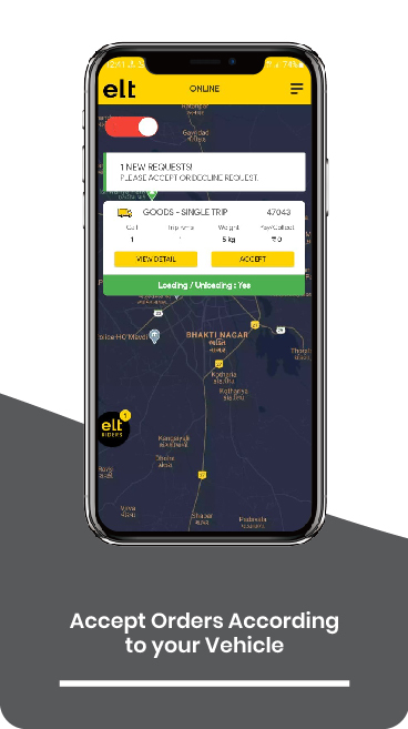 Rajkot 지역에서 차량을 예약하고 상품을 이동하려면 ELT 앱을 사용하십시오. 스쿠터, CNG 자동차, 타타 에이스, 원숭이, 아툴 오토, 볼레로 픽업 등 도시의 가장 큰 자전거 및 트럭 차량에서 올바른 차량을 요청하려면 탭하십시오.