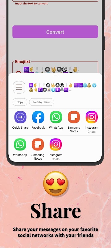 Emojitxt는 키보드로 입력할 수 있는 문자, 숫자, 구두점 또는 기호를 유사한 모양의 이모티콘으로 대체하여 영숫자 텍스트를 이모티콘으로 변환할 수 있는 응용 프로그램입니다.