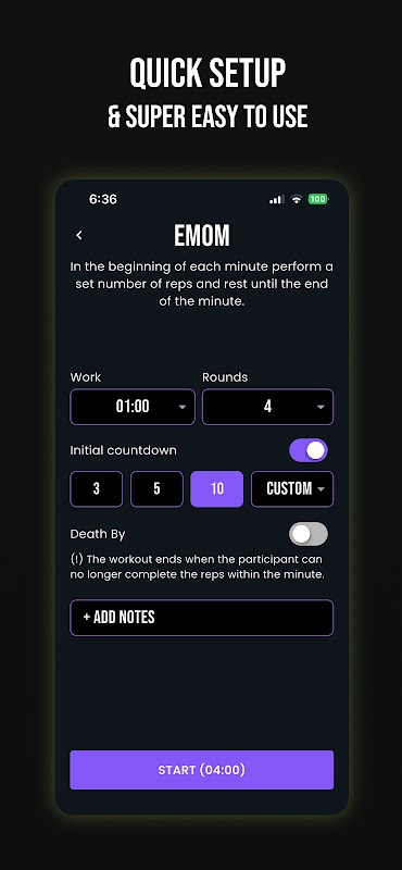 • 운동 메모: 운동 중에 앱을 전환할 필요 없이 EMOM 계획을 적어 두세요.