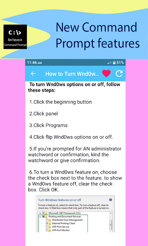 This app helps in understanding the basic uses of commands and its functionalities of commands Prompt.CMD Command Prompt best features commands Enable to this apps.Command Prompt is an fantastic app designed to help our community to know about command prompt commands.