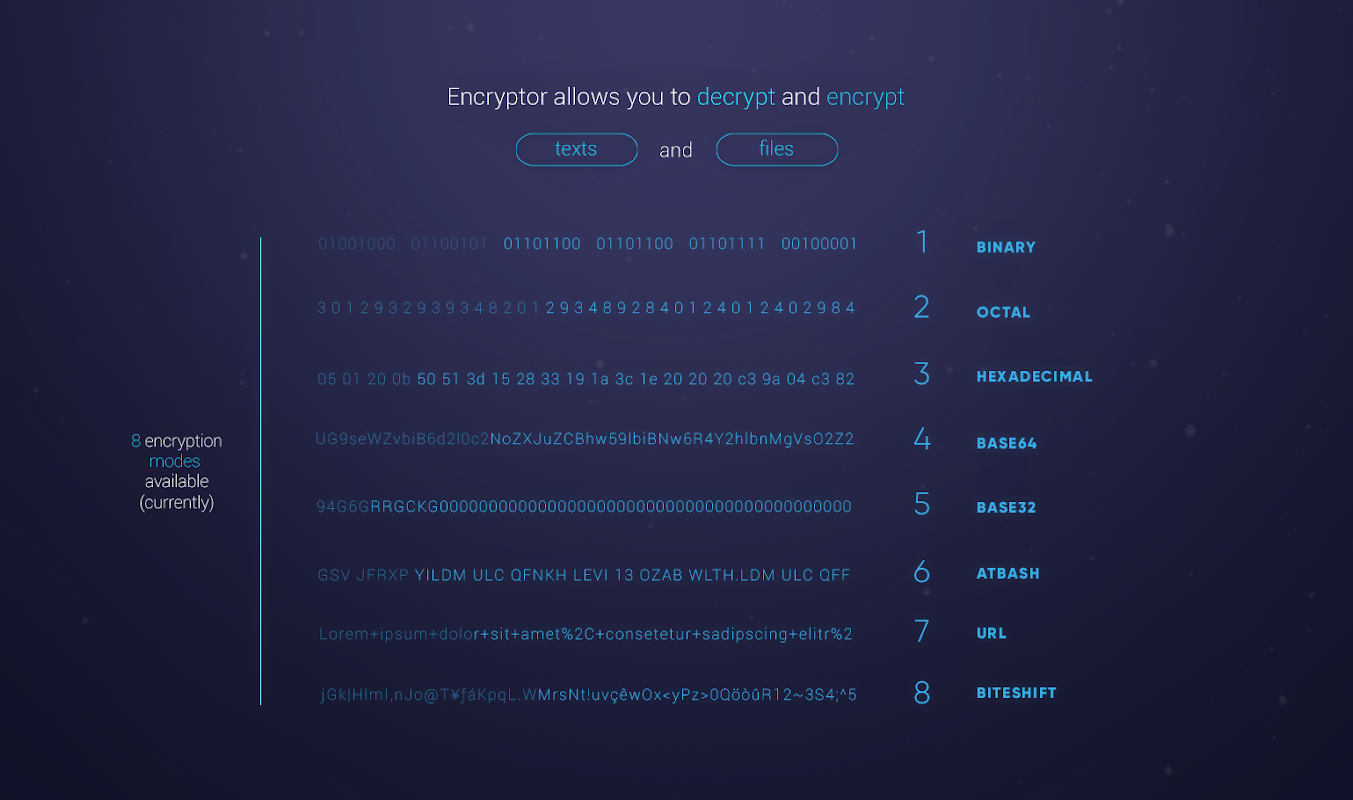 This app allows you to encrypt and decrypt texts and files using different encryption modes.