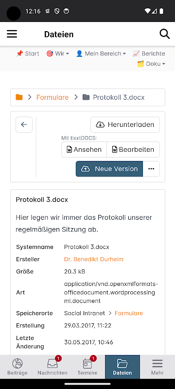– Neues Design – Chat in der App (wenn aktiviert) – Eigenes Netzwerk-Design – Viele neu Funktionen bei der Beitragserstellung – Gruppenadministration – Alle Funktionen des Terminmoduls – Bearbeiten von Dateien mit tixxtDOCs