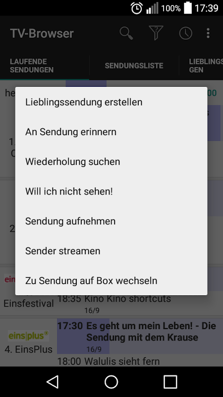오픈 TV-브라우저 및 언론과는 녹화 할 프로그램을 누르고 있습니다. 탭에 개방 컨텍스트 메뉴, 당신이 할 수있는 "녹화 프로그램". 사용할 프로파일의 선택을 열고 원하는 선택합니다. 에러가 발생하지 않으면, 프로그램은 녹색 및 아이콘이 강조된다. 현재 수신기에는 연결이 가능하지하는 경우, 플러그인은 나중에 다시 시도합니다.
